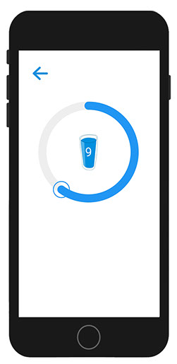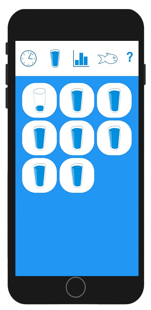 Cuando pulsas un vaso de la pantalla principal éste se vacía y así sabes en cualquier momento cuántos vasos de agua has bebido ya.
